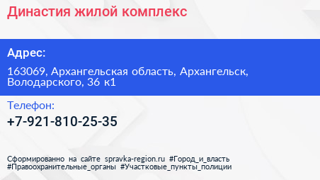 Династия, жилой комплекс по адресу 163069, Архангельская область, Архангельск, Володарского, 36 к1 в дальнейшем Организация, размещена в следующих категориях: