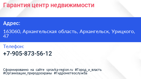 Гарантия, центр недвижимости по адресу 163060, Архангельская область, Архангельск, Урицкого, 47 в дальнейшем Организация, размещена в следующих категориях: