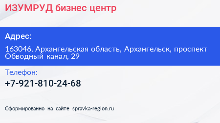ИЗУМРУД, бизнес-центр по адресу 163046, Архангельская область, Архангельск, проспект Обводный канал, 29 в дальнейшем Организация, размещена в следующих категориях: