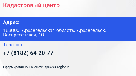 Кадастровый центр по адресу 163000, Архангельская область, Архангельск, Воскресенская, 10 в дальнейшем Организация, размещена в следующих категориях: