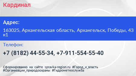 Кардинал по адресу 163025, Архангельская область, Архангельск, Победы, 43 к1 в дальнейшем Организация, размещена в следующих категориях: