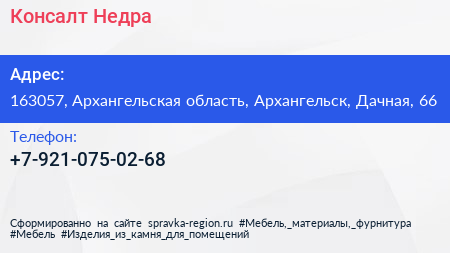 Консалт Недра по адресу 163057, Архангельская область, Архангельск, Дачная, 66 в дальнейшем Организация, размещена в следующих категориях: