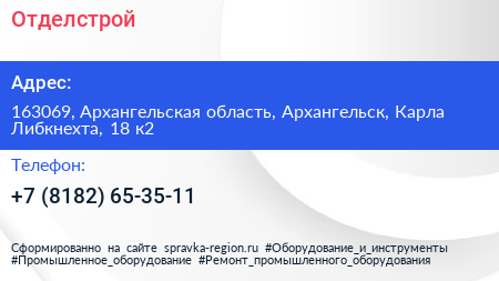 Отделстрой по адресу 163069, Архангельская область, Архангельск, Карла Либкнехта, 18 к2 в дальнейшем Организация, размещена в следующих категориях: