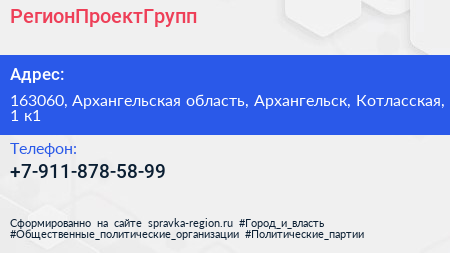РегионПроектГрупп по адресу 163060, Архангельская область, Архангельск, Котласская, 1 к1 в дальнейшем Организация, размещена в следующих категориях: