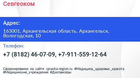 Севгеоком по адресу 163001, Архангельская область, Архангельск, Вологодская, 10 в дальнейшем Организация, размещена в следующих категориях: