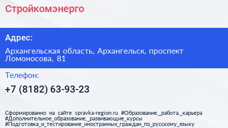 Стройкомэнерго по адресу Архангельская область, Архангельск, проспект Ломоносова, 81 в дальнейшем Организация, размещена в следующих категориях: