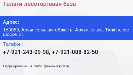 Талаги, лесоторговая база по адресу 163053, Архангельская область, Архангельск, Талажское шоссе, 31 в дальнейшем Организация, размещена в следующих категориях: