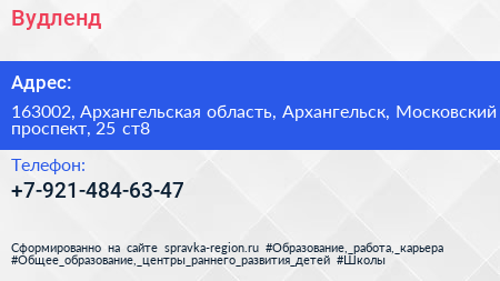 Вудленд по адресу 163002, Архангельская область, Архангельск, Московский проспект, 25 ст8 в дальнейшем Организация, размещена в следующих категориях: