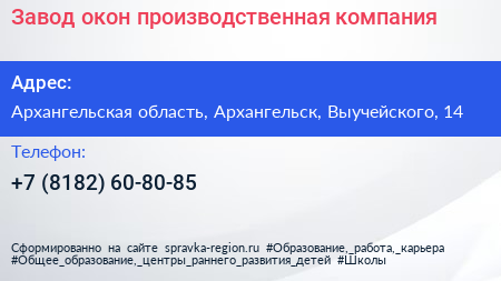 Завод окон, производственная компания по адресу Архангельская область, Архангельск, Выучейского, 14 в дальнейшем Организация, размещена в следующих категориях: