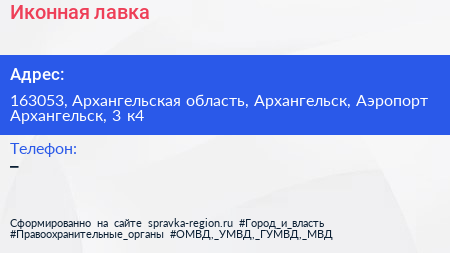 Иконная лавка по адресу 163053, Архангельская область, Архангельск, Аэропорт Архангельск, 3 к4 в дальнейшем Организация, размещена в следующих категориях: