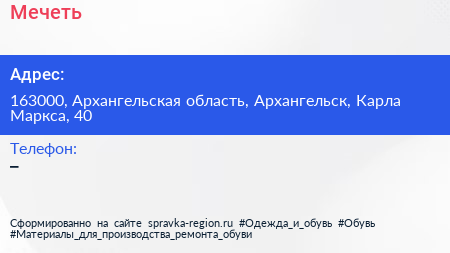 Мечеть по адресу 163000, Архангельская область, Архангельск, Карла Маркса, 40 в дальнейшем Организация, размещена в следующих категориях: