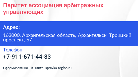 Паритет, ассоциация арбитражных управляющих по адресу 163000, Архангельская область, Архангельск, Троицкий проспект, 67 в дальнейшем Организация, размещена в следующих категориях: