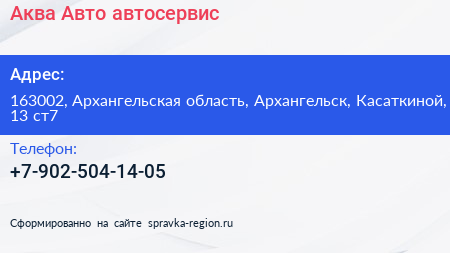 Аква-Авто, автосервис по адресу 163002, Архангельская область, Архангельск, Касаткиной, 13 ст7 в дальнейшем Организация, размещена в следующих категориях: