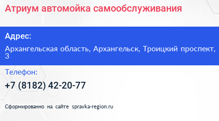 Атриум, автомойка самообслуживания по адресу Архангельская область, Архангельск, Троицкий проспект, 3 в дальнейшем Организация, размещена в следующих категориях: