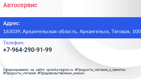 Автосервис по адресу 163039, Архангельская область, Архангельск, Тяговая, 100 в дальнейшем Организация, размещена в следующих категориях: