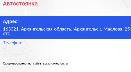 Автостоянка по адресу 163021, Архангельская область, Архангельск, Маслова, 25 ст1 в дальнейшем Организация, размещена в следующих категориях: