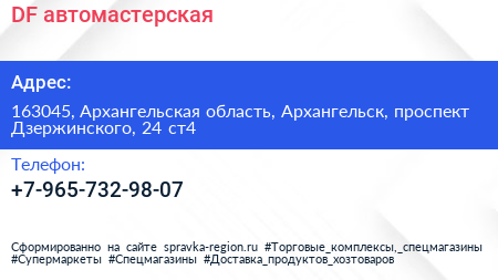 DF, автомастерская по адресу 163045, Архангельская область, Архангельск, проспект Дзержинского, 24 ст4 в дальнейшем Организация, размещена в следующих категориях: