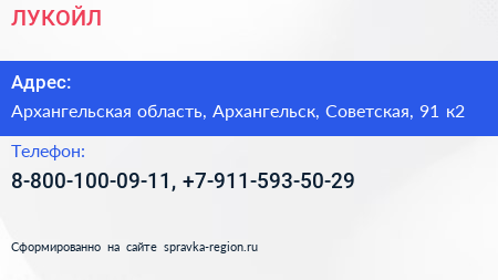 ЛУКОЙЛ по адресу Архангельская область, Архангельск, Советская, 91 к2 в дальнейшем Организация, размещена в следующих категориях: