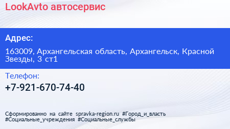 LookAvto, автосервис по адресу 163009, Архангельская область, Архангельск, Красной Звезды, 3 ст1 в дальнейшем Организация, размещена в следующих категориях: