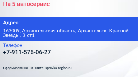 На 5, автосервис по адресу 163009, Архангельская область, Архангельск, Красной Звезды, 3 ст1 в дальнейшем Организация, размещена в следующих категориях: