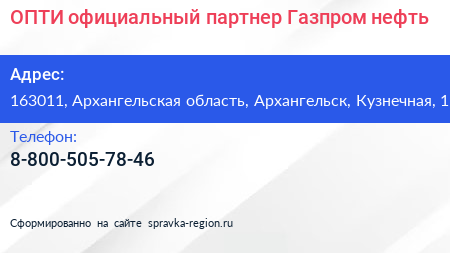 ОПТИ, официальный партнер Газпром нефть по адресу 163011, Архангельская область, Архангельск, Кузнечная, 1 в дальнейшем Организация, размещена в следующих категориях: