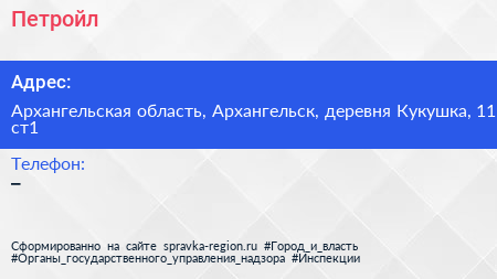 Петройл по адресу Архангельская область, Архангельск, деревня Кукушка, 11 ст1 в дальнейшем Организация, размещена в следующих категориях: