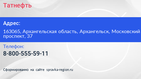 Татнефть по адресу 163065, Архангельская область, Архангельск, Московский проспект, 37 в дальнейшем Организация, размещена в следующих категориях: