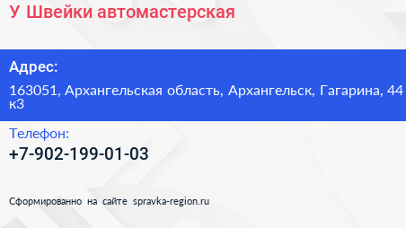 У Швейки, автомастерская по адресу 163051, Архангельская область, Архангельск, Гагарина, 44 к3 в дальнейшем Организация, размещена в следующих категориях: