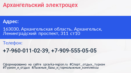 Архангельский электроцех по адресу 163030, Архангельская область, Архангельск, Ленинградский проспект, 311 ст10 в дальнейшем Организация, размещена в следующих категориях: