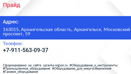 Прайд по адресу 163015, Архангельская область, Архангельск, Московский проспект, 59 в дальнейшем Организация, размещена в следующих категориях: