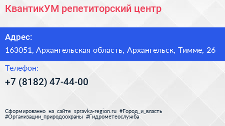 КвантикУМ, репетиторский центр по адресу 163051, Архангельская область, Архангельск, Тимме, 26 в дальнейшем Организация, размещена в следующих категориях: