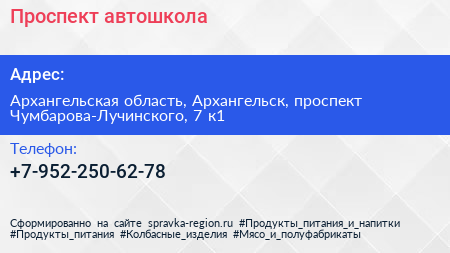 Проспект, автошкола по адресу Архангельская область, Архангельск, проспект Чумбарова-Лучинского, 7 к1 в дальнейшем Организация, размещена в следующих категориях: