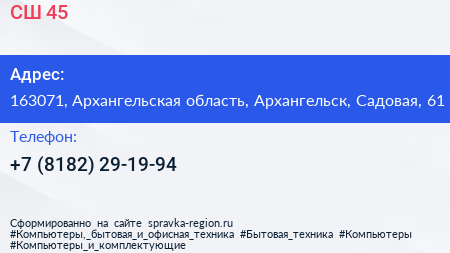 СШ №45 по адресу 163071, Архангельская область, Архангельск, Садовая, 61 в дальнейшем Организация, размещена в следующих категориях: