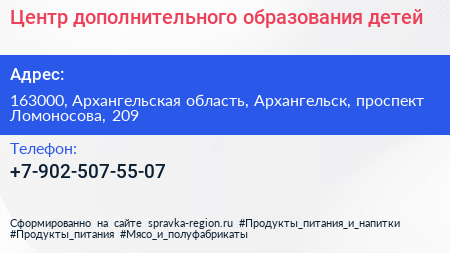 Центр дополнительного образования детей по адресу 163000, Архангельская область, Архангельск, проспект Ломоносова, 209 в дальнейшем Организация, размещена в следующих категориях: