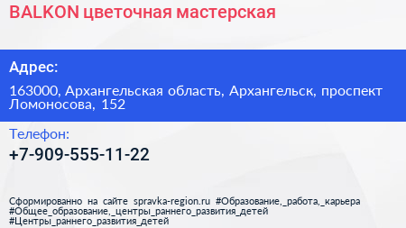 BALKON, цветочная мастерская по адресу 163000, Архангельская область, Архангельск, проспект Ломоносова, 152 в дальнейшем Организация, размещена в следующих категориях: