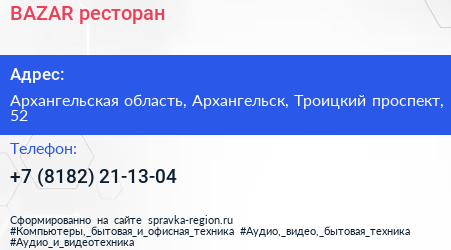 BAZAR, ресторан по адресу Архангельская область, Архангельск, Троицкий проспект, 52 в дальнейшем Организация, размещена в следующих категориях: