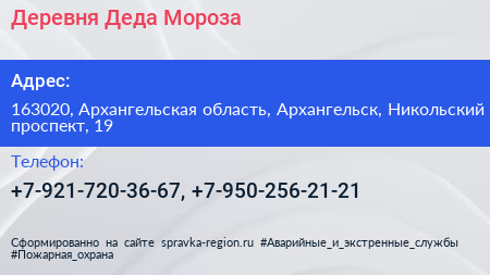 Деревня Деда Мороза по адресу 163020, Архангельская область, Архангельск, Никольский проспект, 19 в дальнейшем Организация, размещена в следующих категориях: