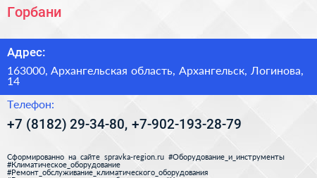 Горбани по адресу 163000, Архангельская область, Архангельск, Логинова, 14 в дальнейшем Организация, размещена в следующих категориях: