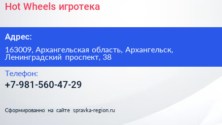Hot Wheels, игротека по адресу 163009, Архангельская область, Архангельск, Ленинградский проспект, 38 в дальнейшем Организация, размещена в следующих категориях: