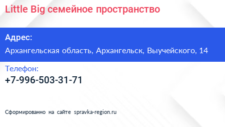 Little & Big, семейное пространство по адресу Архангельская область, Архангельск, Выучейского, 14 в дальнейшем Организация, размещена в следующих категориях: