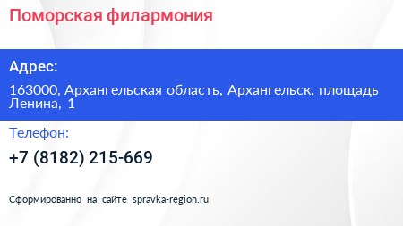 Поморская филармония по адресу 163000, Архангельская область, Архангельск, площадь Ленина, 1 в дальнейшем Организация, размещена в следующих категориях: