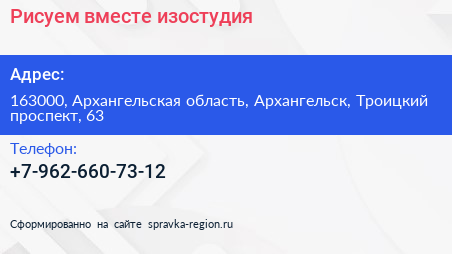 Рисуем вместе, изостудия по адресу 163000, Архангельская область, Архангельск, Троицкий проспект, 63 в дальнейшем Организация, размещена в следующих категориях: