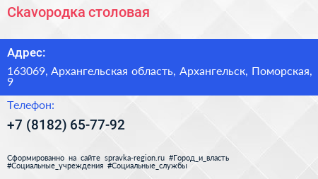 Сkаvородка, столовая по адресу 163069, Архангельская область, Архангельск, Поморская, 9 в дальнейшем Организация, размещена в следующих категориях: