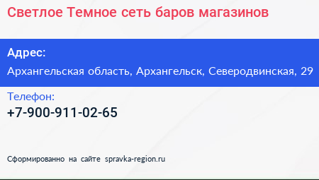 Светлое & Темное, сеть баров-магазинов по адресу Архангельская область, Архангельск, Северодвинская, 29 в дальнейшем Организация, размещена в следующих категориях: