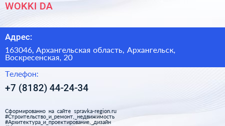 WOKKI`DA по адресу 163046, Архангельская область, Архангельск, Воскресенская, 20 в дальнейшем Организация, размещена в следующих категориях: