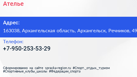 Ателье по адресу 163038, Архангельская область, Архангельск, Речников, 49 в дальнейшем Организация, размещена в следующих категориях: