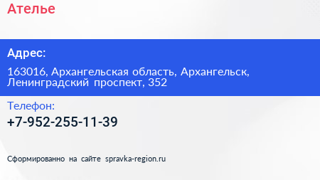 Ателье по адресу 163016, Архангельская область, Архангельск, Ленинградский проспект, 352 в дальнейшем Организация, размещена в следующих категориях: