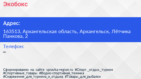 Экобокс по адресу 163513, Архангельская область, Архангельск, Лётчика Панкова, 2 в дальнейшем Организация, размещена в следующих категориях: