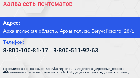 Халва, сеть почтоматов по адресу Архангельская область, Архангельск, Выучейского, 28/1 в дальнейшем Организация, размещена в следующих категориях: