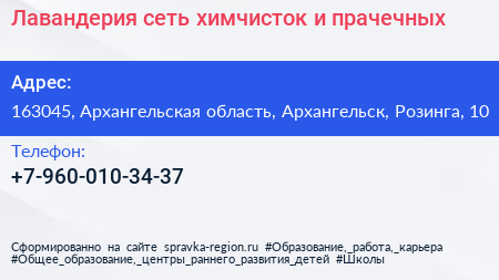 Лавандерия, сеть химчисток и прачечных по адресу 163045, Архангельская область, Архангельск, Розинга, 10 в дальнейшем Организация, размещена в следующих категориях: